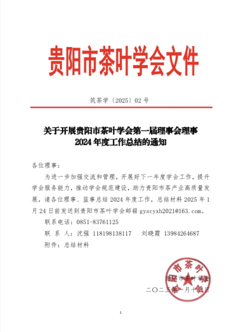 关于开展贵阳市茶叶学会第一届理事会理事2024年度工作总结的通知