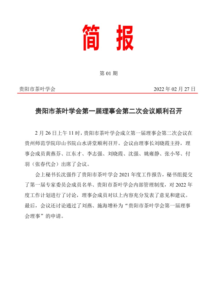 贵阳市茶叶学会第一届理事会第二次会议顺利召开